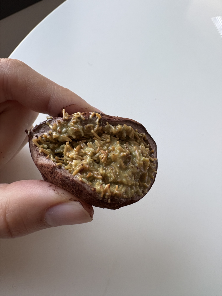 식감: 속은 바삭하고 겉은 꾸덕하고 쨘득한 식감이 살아있어요. 특히 마시멜로가 찹쌀떡처럼 쫀득해요. 여기저기 거 먹어봤지만 나름 먹어본 것들 중에서 두께도 적절하고 제일 쫀득한 듯해요. 내부 카다이프도 최근 카다이프 수급이 어려워 저품질 재료를 쓰는 곳도 많은데, 여기는 식감이 아주 좋았습니다 제기준